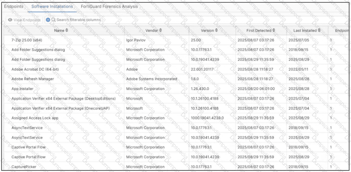 Which type of information or actions are available to a FortiSASE administrator from the following output? (Choose one answer)