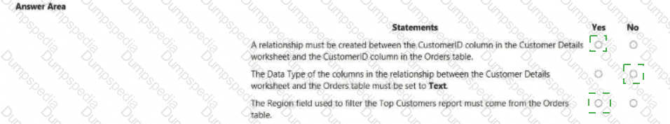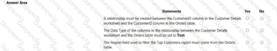 You use Power Query to import two tables named Order Header and Order Details from an Azure SQL database. The Order Header table relates to the Order Details table by using a column named Order ID in each table.