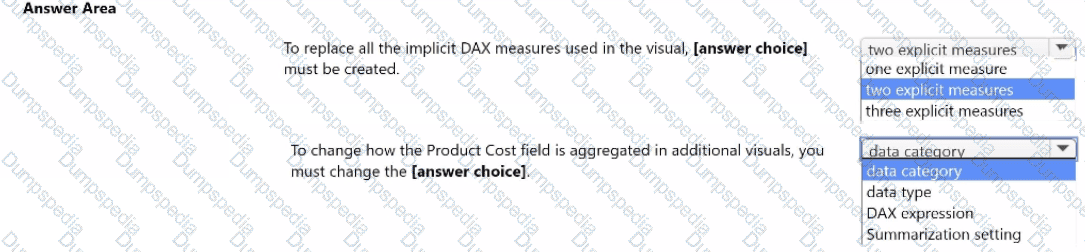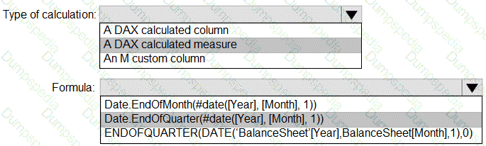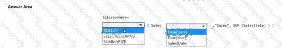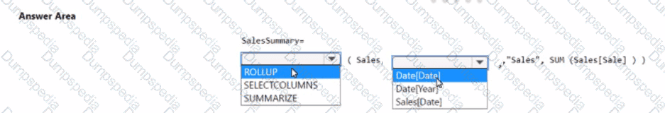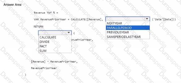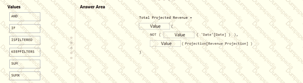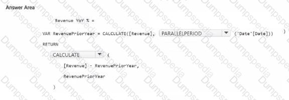 How should you complete the DAX expression? To answer, select the appropriate options in the answer area.