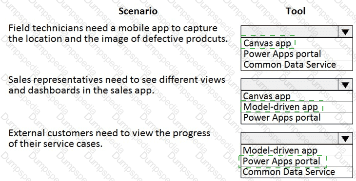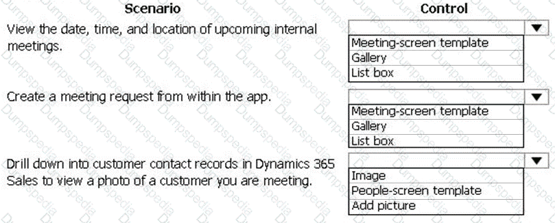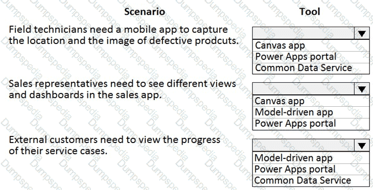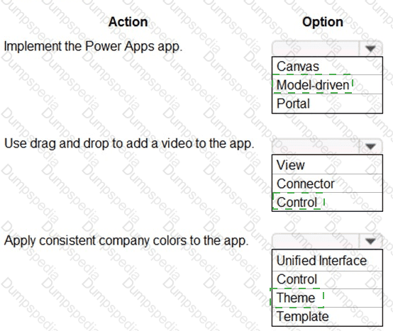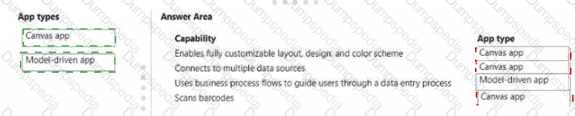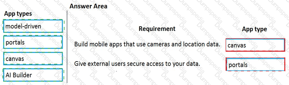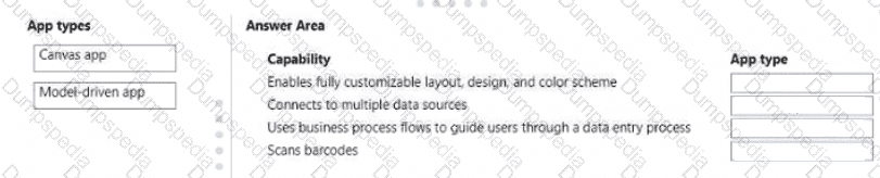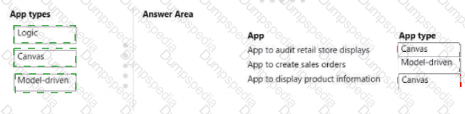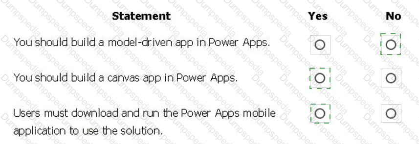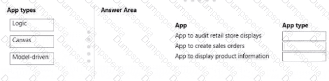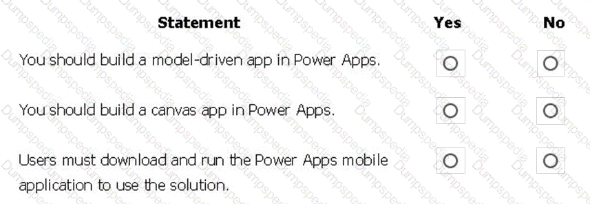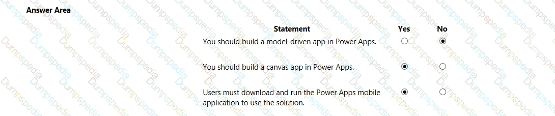 You need to recommend the appropriate types of Power Apps to meet the company’s requirements.