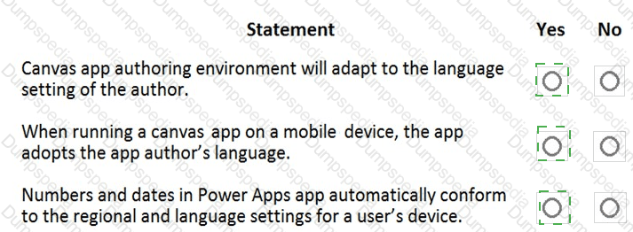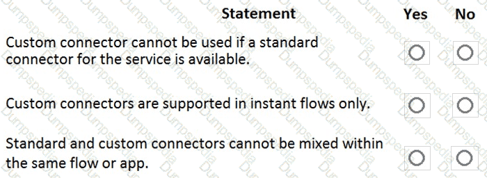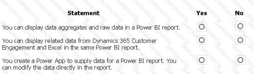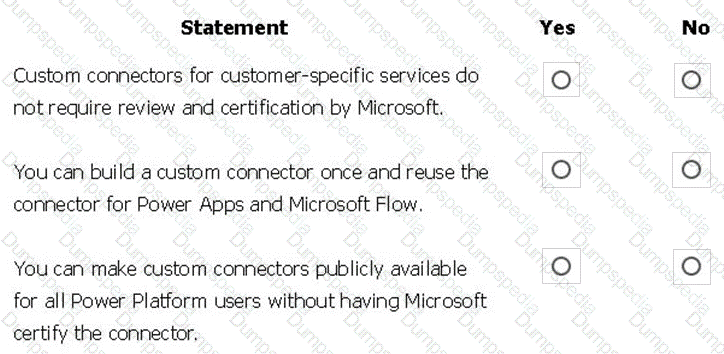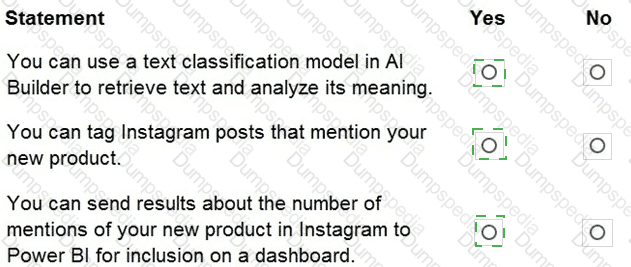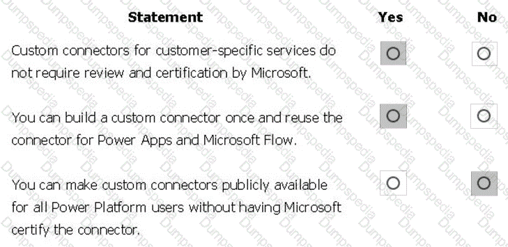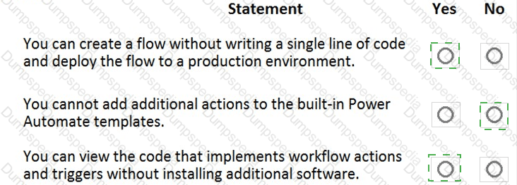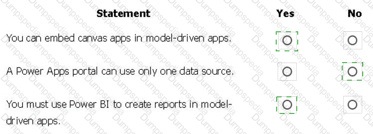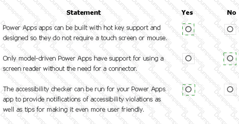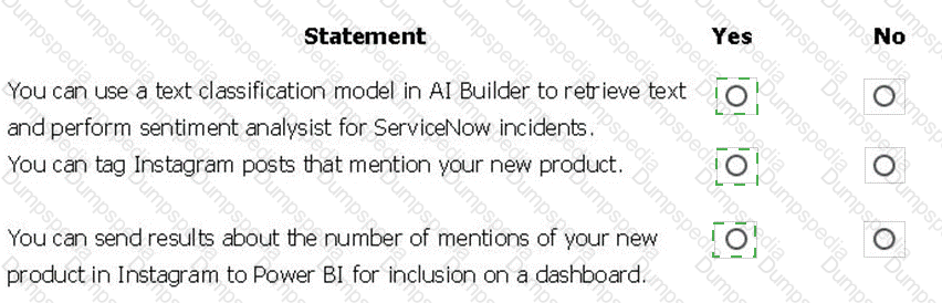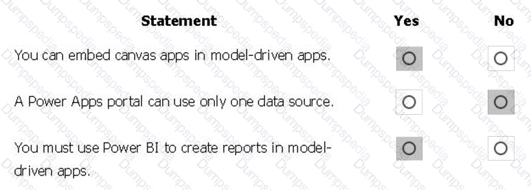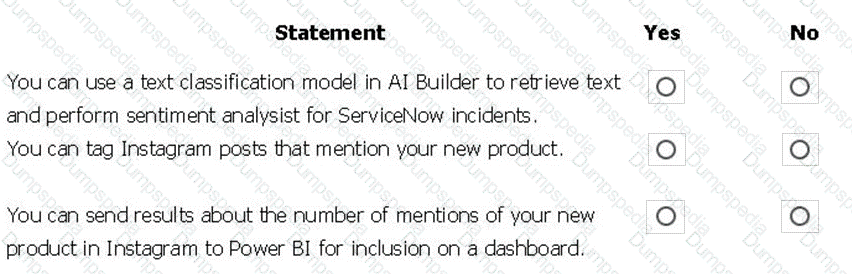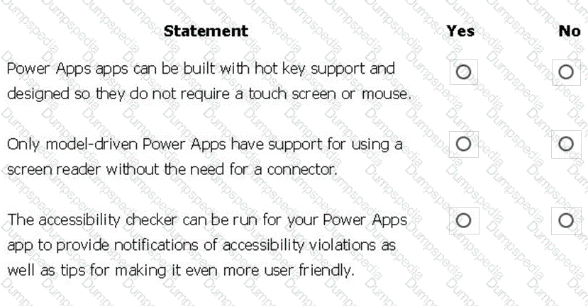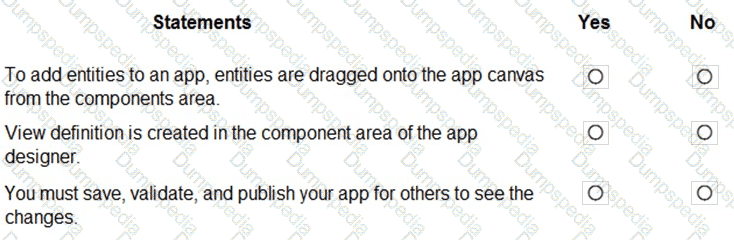 For each of the following statements, select Yes if the statement Is true. Otherwise, select No.