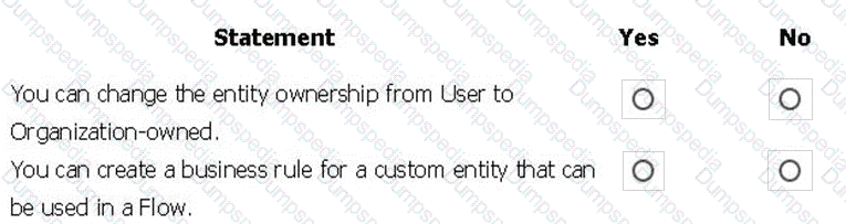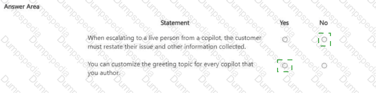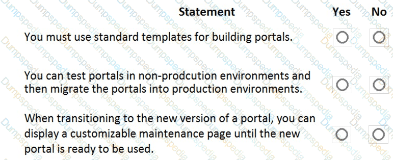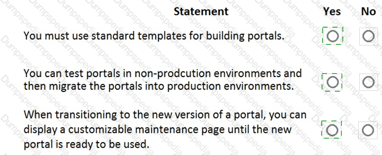 For each of the following statements, select Yes if the statement is true. Otherwise, select No.