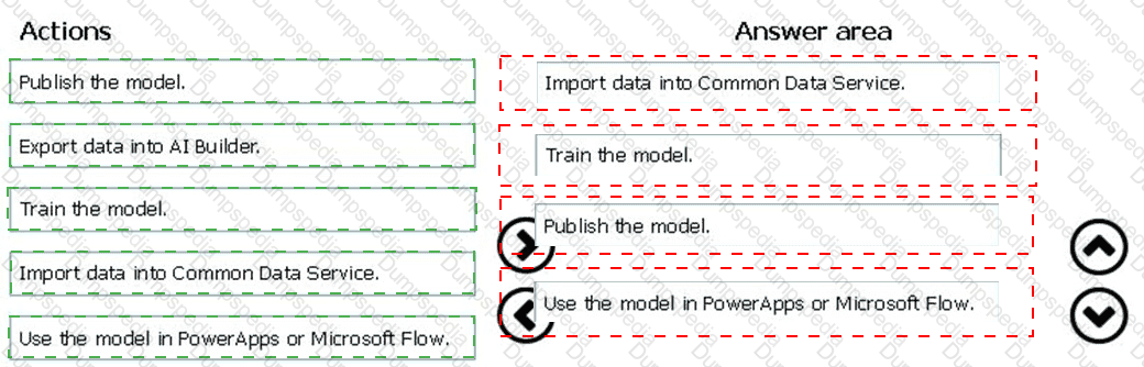 In which order should you perform the actions? To answer, move all actions from the list of actions to the answer area and arrange them in the correct order.
