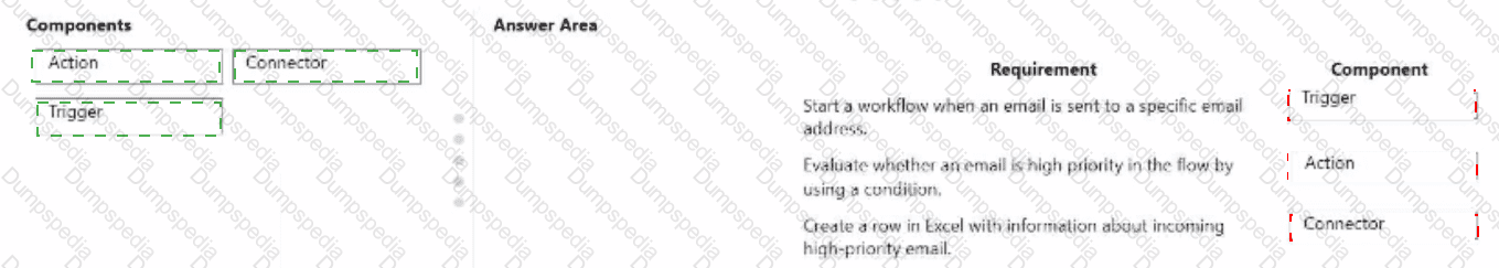 Which features should you use to create the workflow? To answer, select the appropriate options in the answer area.