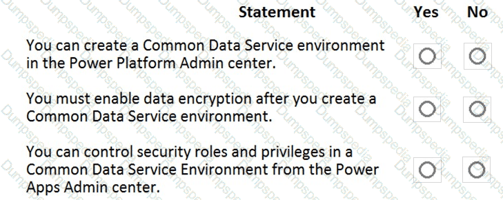 A company plans to implement solutions that use Common Data Service as a data storage.