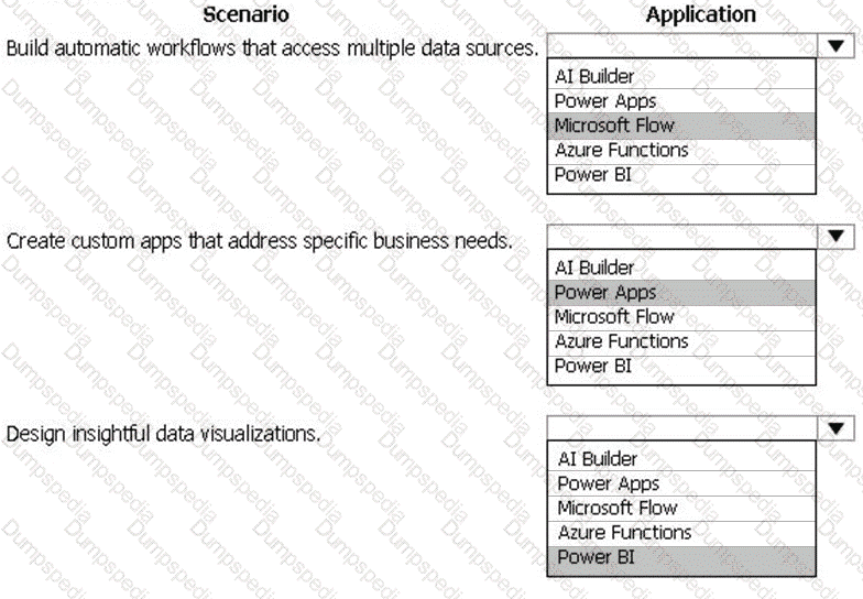 A company plans to use Power Platform to build apps which address specific business challenges.