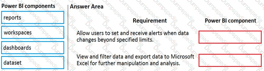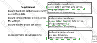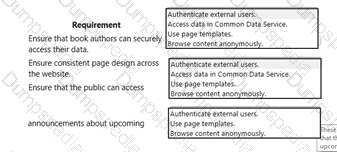 To answer, drag the appropriate components to the correct requirements. Each component may be used once, more than once, or not at all. You may need to drag the split bar between panes or scroll to view content.