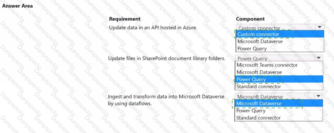 A company is creating a canvas app to display data from a legacy system that is located on the company’s internal network.