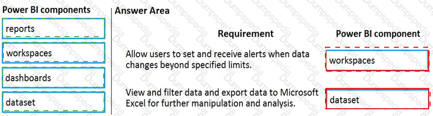 Which components should you use? To answer, drag the appropriate components to the correct requirements. Each component may be used once, more than once, or not at all. You may need to drag the spilt bar between panes or scroll to view content.