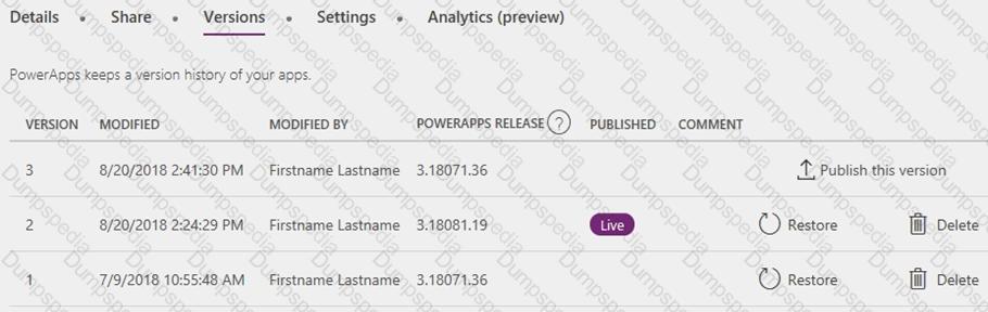 A company uses a Power Apps canvas app to enter information. The canvas app uses a Microsoft SharePoint list to store information.
