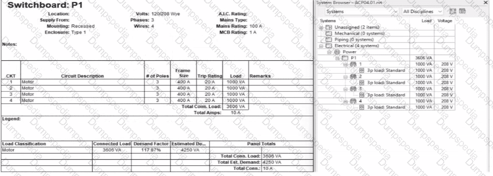An electrical designer expects the total connected load on the switchboard to be 4000VA. but Revit Indicates a total connected load of 3606VA. What Is the cause of the discrepancy?
