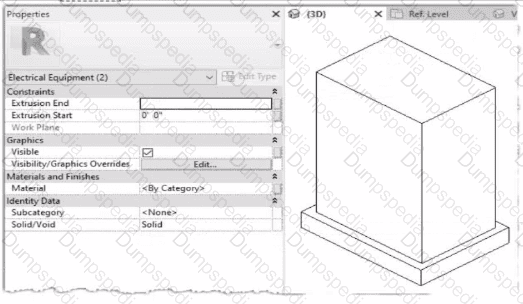 An electrical designer creates a simple family of a transformer with a concrete housekeeping pad using two rectangular extrusions. Both extrusions and their properties within the family editor are shown.