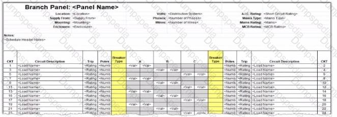 An electrical designer wants to report Breaker Type for each breaker in a panel schedule. The designer adds a column to the schedule as shown (and highlighted) in the image.