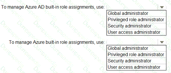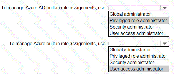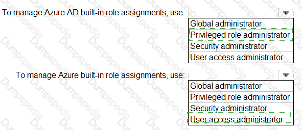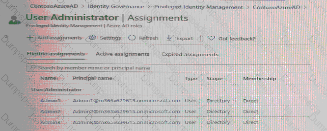 You view the User administrator role assignments as shown in the Role assignments exhibit. (Click the Role assignments lab.)