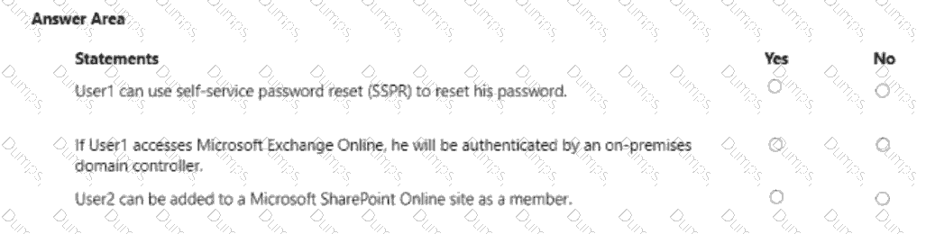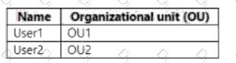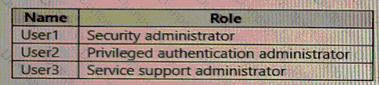 Your network contains an on-premises Active Directory Domain Services (AD DS) domain that syncs with Azure AD and contains the users shown in the following table.