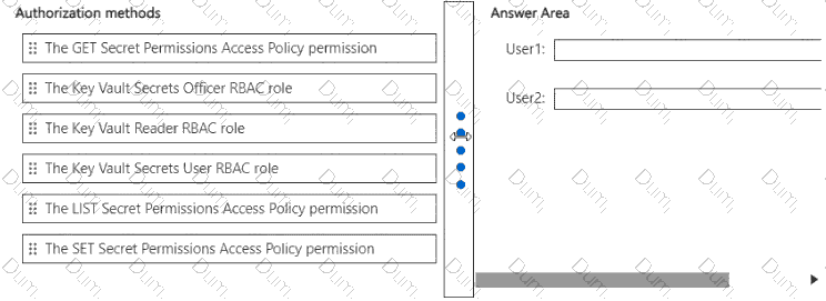 Which authorization method should you use for each user? To answer, drag the appropriate authorization methods to the correct users. Each authorization method may be used once, more than once, or not at all. You may need to drag the split bar between panes or scroll to view content.