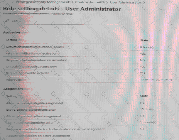 You view the User administrator role settings as shown in the Role setting details exhibit. (Click the Role setting details tab.)