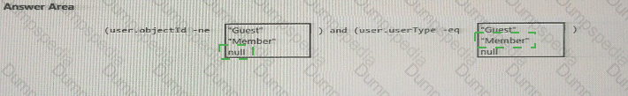 How should you complete the dynamic membership rule? To answer, drag the appropriate values to the correct targets. Each value may be used once, more than once, or not at all. You many need to drag the split bar between panes or scroll to view content.