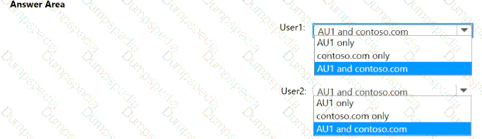 You have a Microsoft Entra tenant named contoso.com that contains an administrative unit named AU1 and two users named User1 and User2. User1 is a member of AU1.