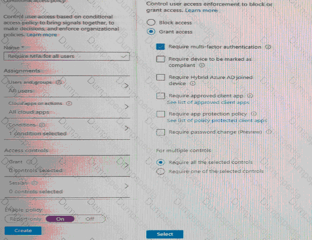 You configure a conditional access policy as shown in the Conditional Access policy exhibit. (Click the Conditional Access policy tab.)