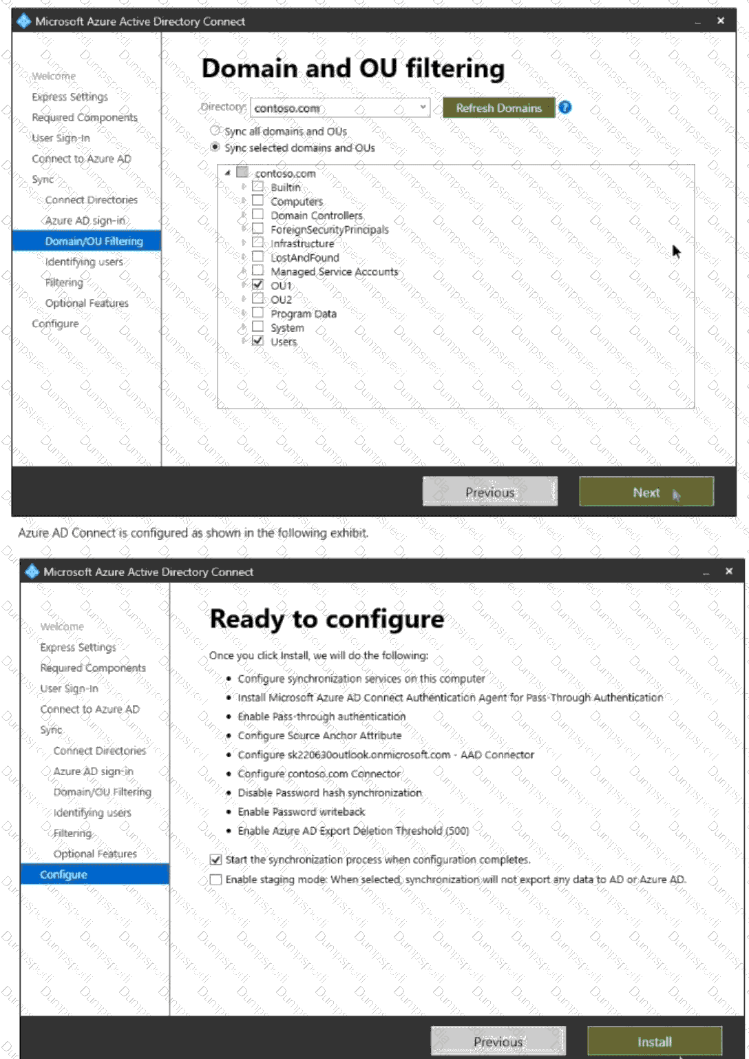 In Azure AD Connect. Domain/OU Filtering is configured as shown in the following exhibit.