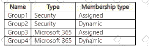 You have a Microsoft Entra tenant that contains the groups shown in the following table.