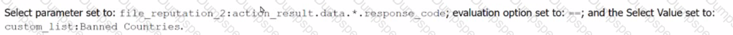 Two action blocks, geolocate_ip 1 and file_reputation_2, are connected to a decision block. Which of the following is a correct configuration for making a decision on the action results from one of the given blocks?