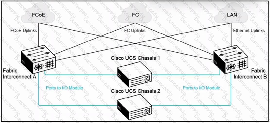 Refer to the exhibit. What is the redundancy implementation in this Cisco UCS architecture?
