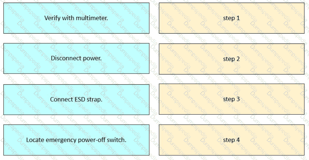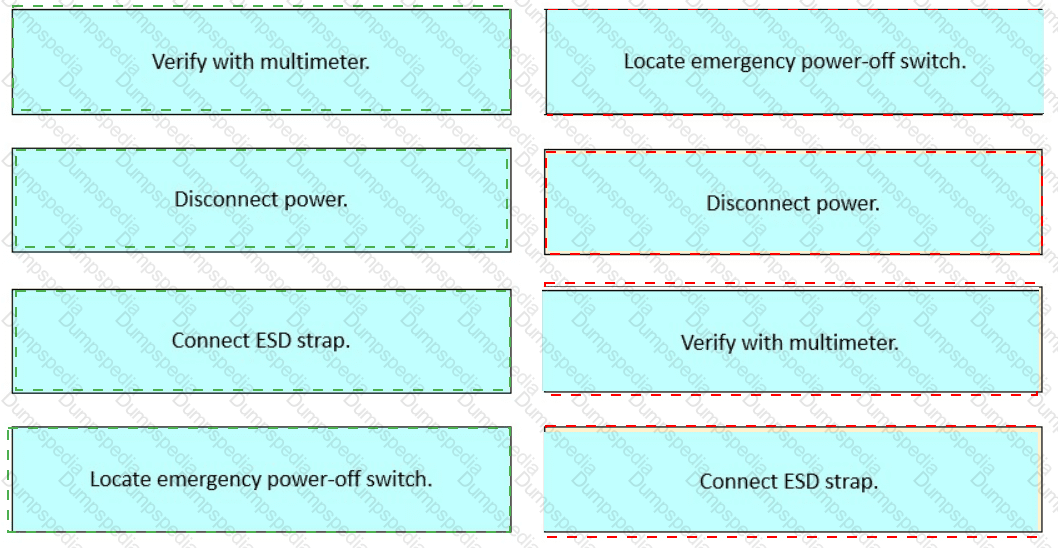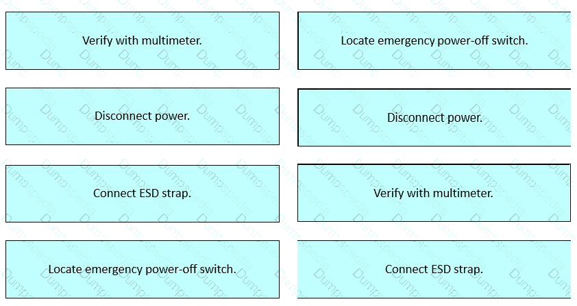 Drag and drop the safety actions that must be taken prior to beginning work into order on the right for working with electrical equipment.