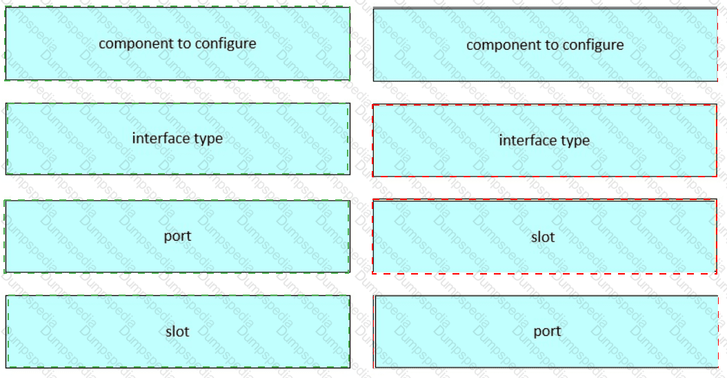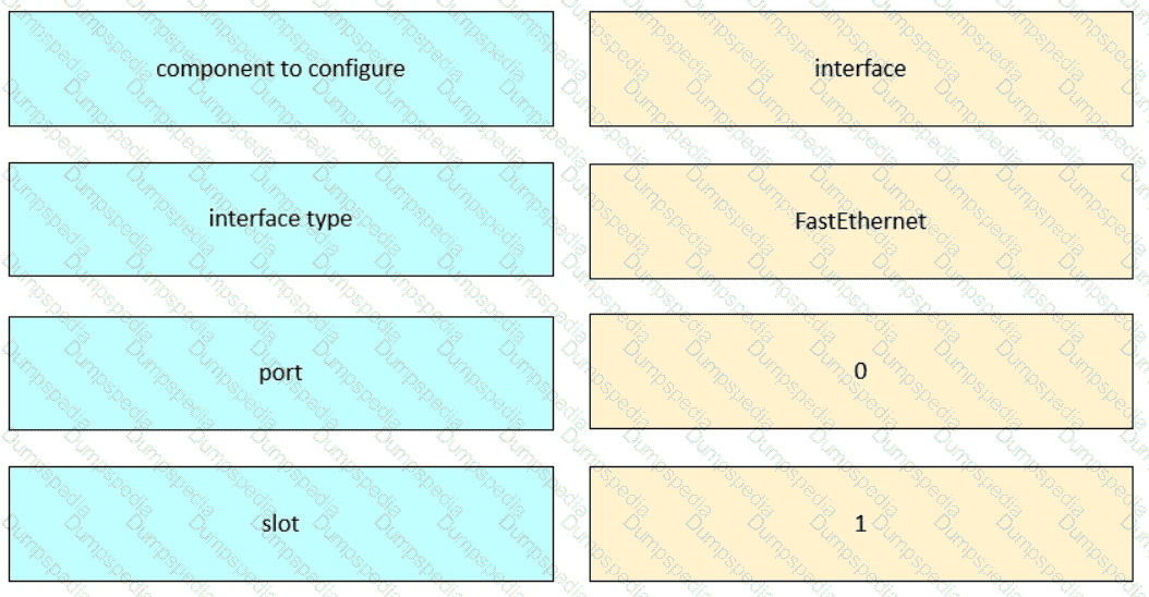Refer to the exhibit. Drag and drop the command names from the left onto the corresponding elements in the interface configuration mode command structure on the right.