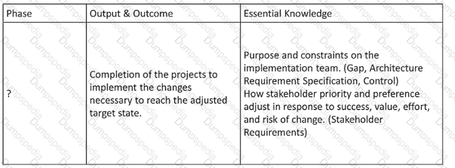 The_________________ensures that a project transitioning into implementation also smoothly transitions into appropriate Architecture Governance.